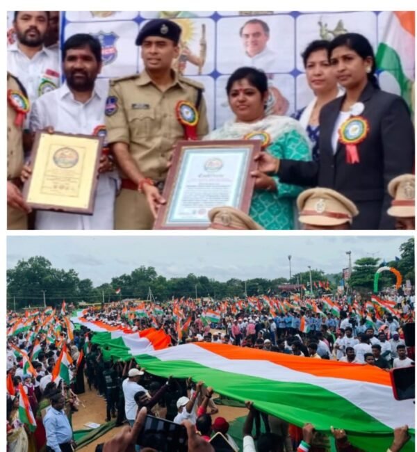 Bellampalli Divison police from Ramagundam Police Commissioner ate,25000 members participated in a rally holding flags and singing “National Anthem”